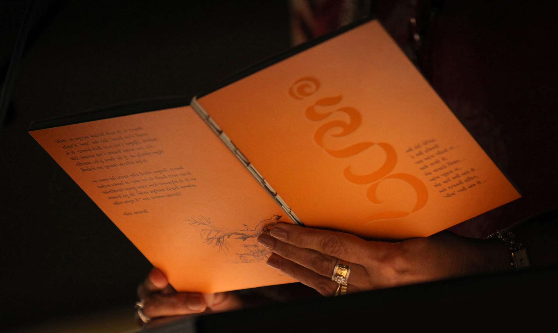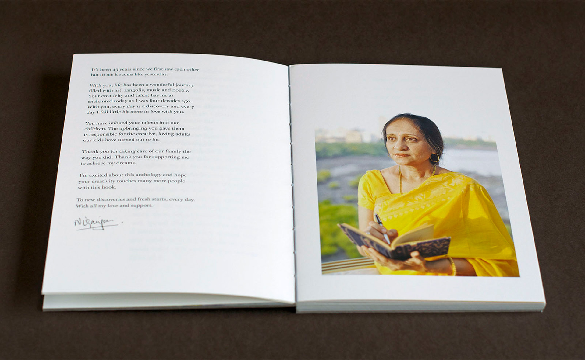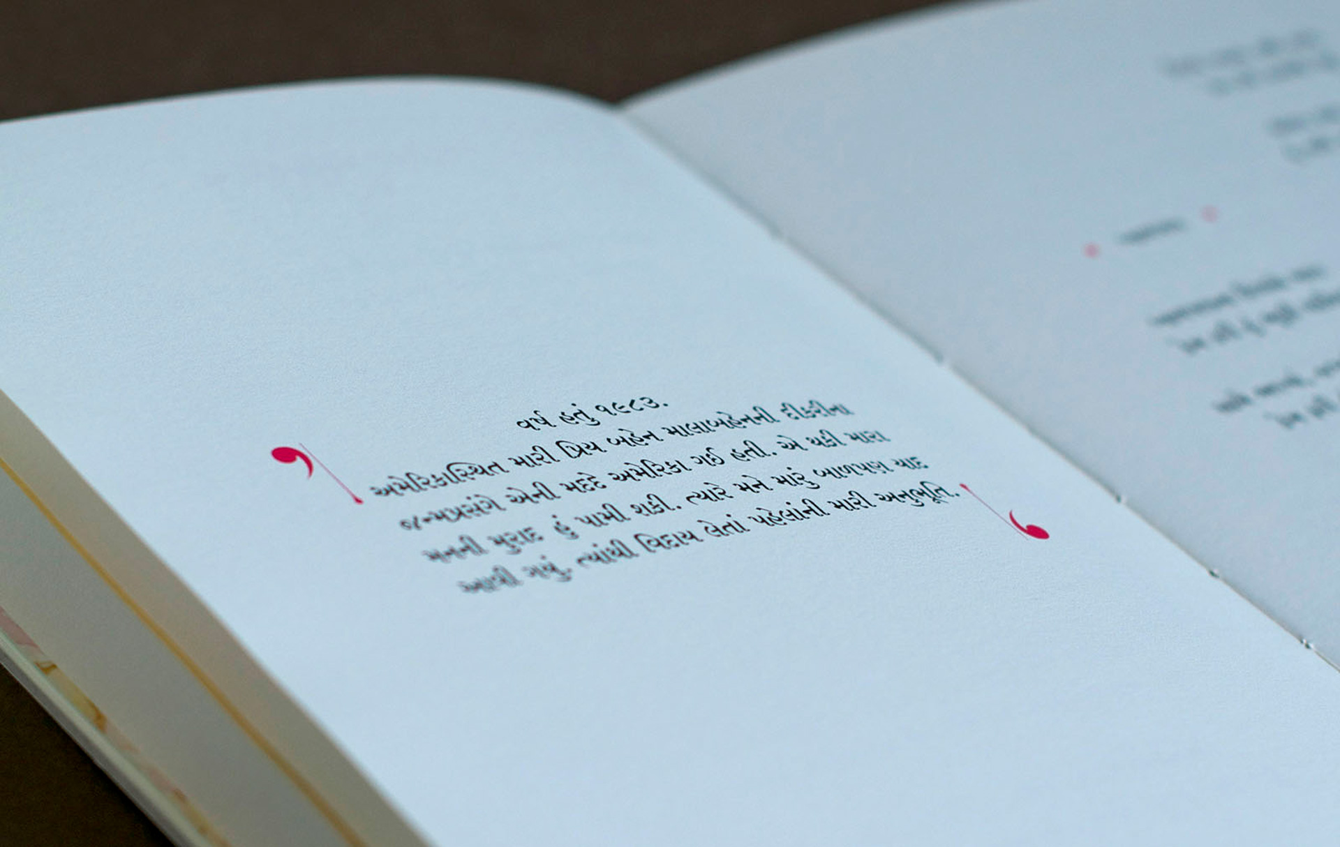 The anthology paralleled the artist’s multiplicity by doing away with a singular title. The first poem begins on the cover itself, with the word inscribed on it, Gujarati for “I.”