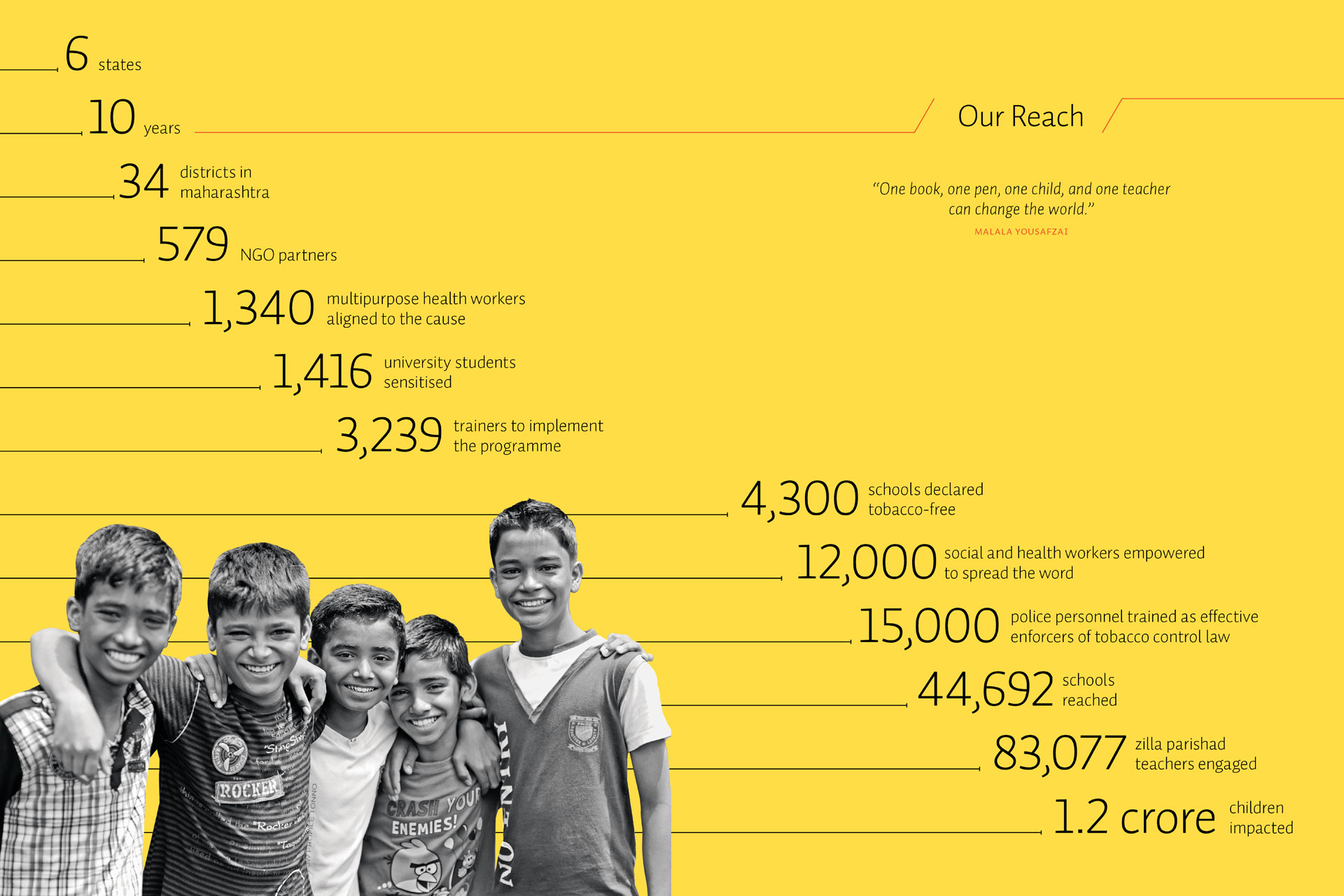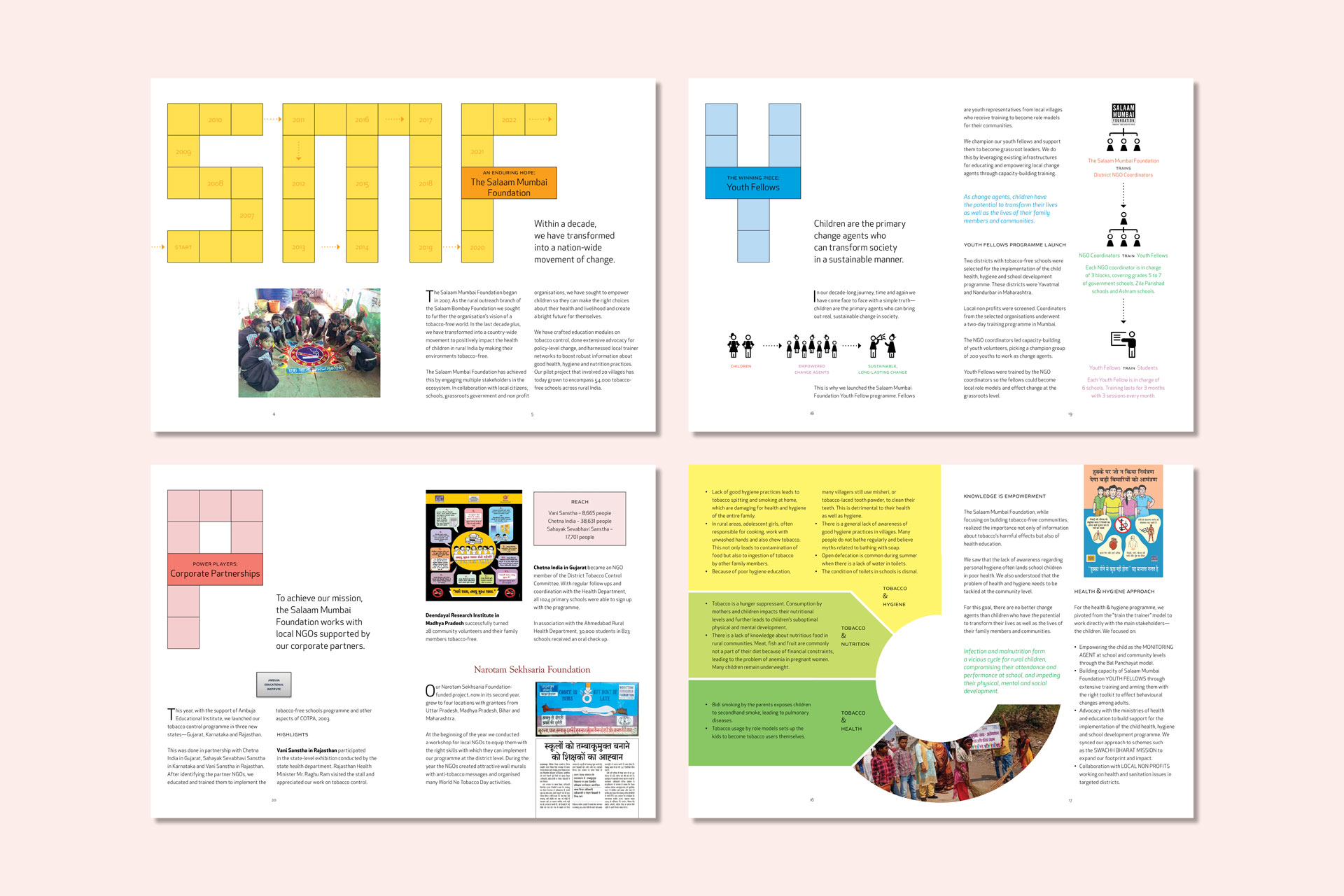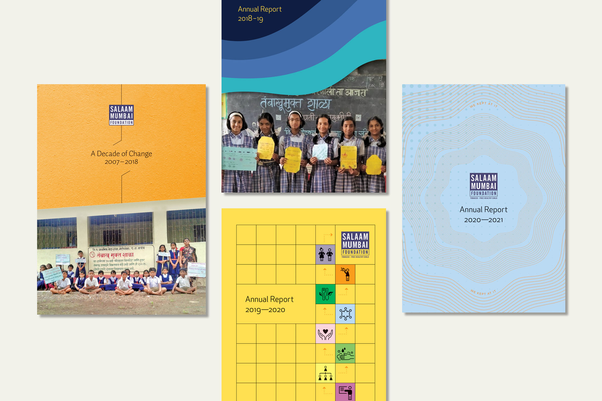 We have been creating the Salaam Mumbai Foundation’s reports for many years, choosing a special theme to showcase the year’s achievements and challenges. The foundation’s mission is to help rural children stay in school by empowering them to make the right choices for their health, education and livelihood.