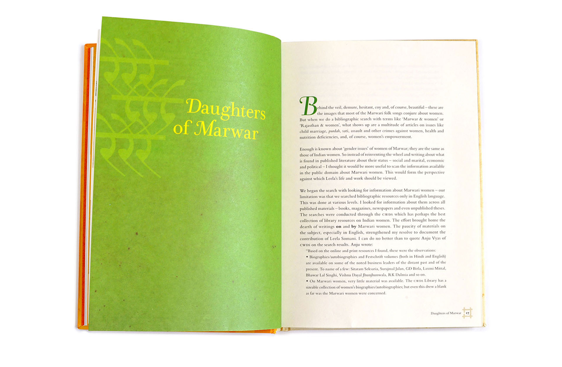 The design also took inspiration from the traditional colours, motifs and photographs of Rajasthan. We worked closely with the author and the Somani family to collate the archival material into the design of the book.