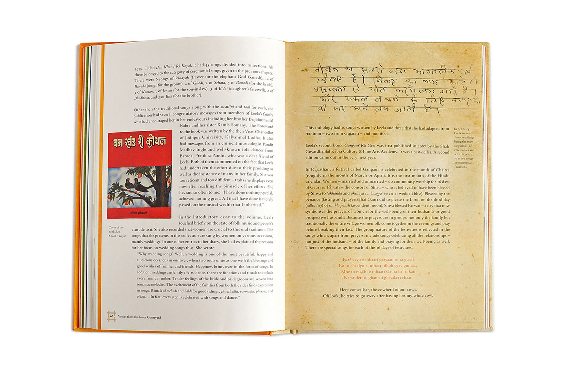 Voices from the Inner Courtyard is biography of the lyricist and composer Leela Somani written by Dr. Nita Mukherjee. The book moves through the inner life of a Marwari family steeped in music, and is as much a life story as it is an account of Rajasthani folk music.